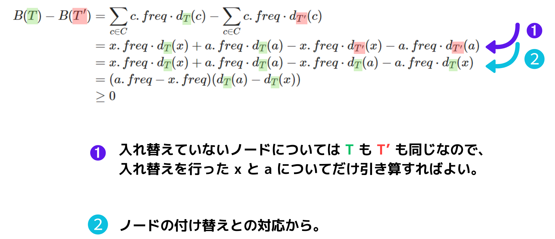 一方で、$j=i+1,\ldots,m$ に対して、$x\in C_{S',j}$ かつ $x\notin C_{S,j}$ が成立する。したがって、これらの要求に少なくとも1つに対して、$S'$ ではキャッシュヒットが起こり、$S$ ではキャッシュミスが起こることになり、仮定に矛盾する。